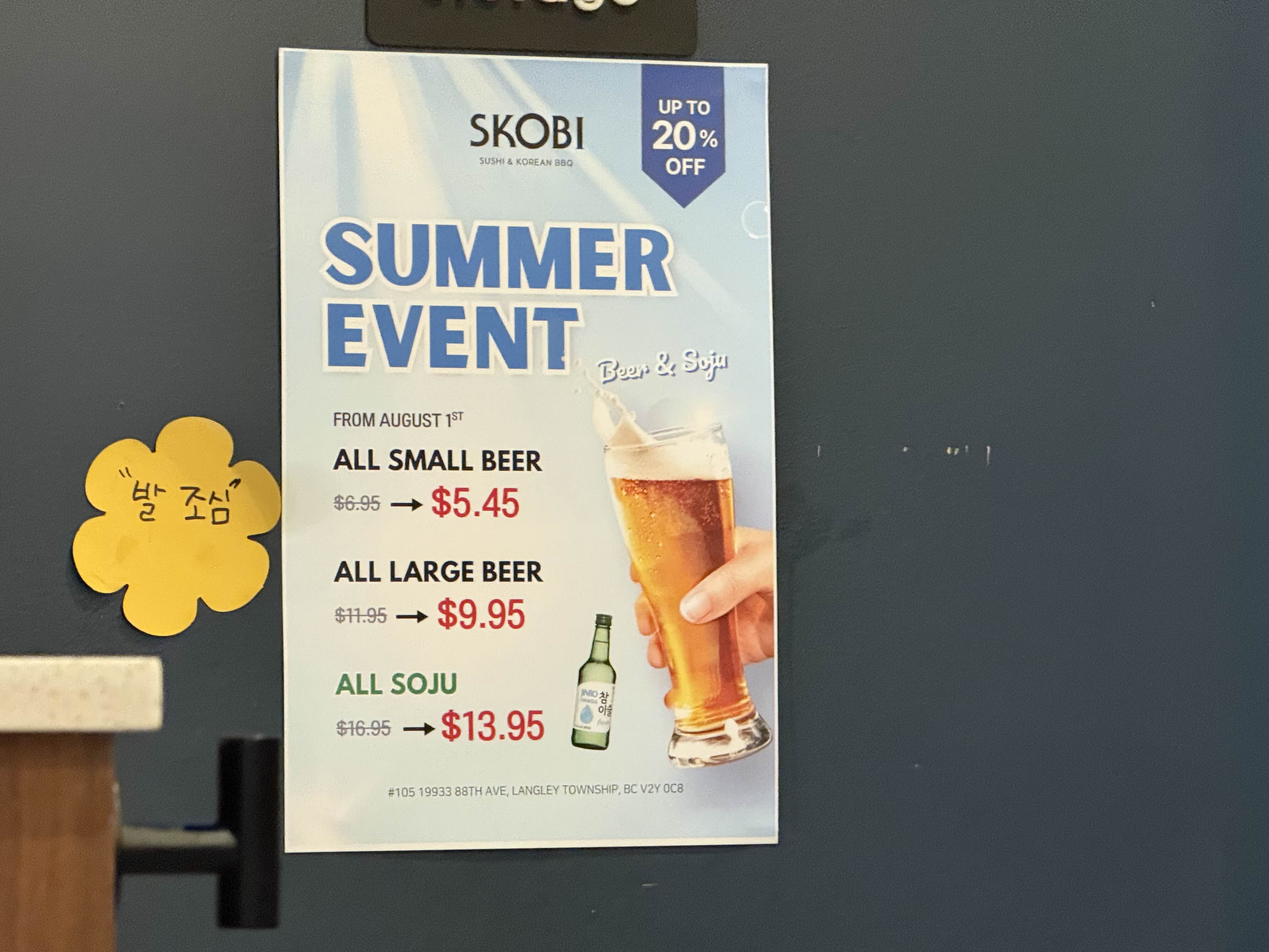 여름 이벤트로 20% 주류 할인이 진행되고 있었어요.