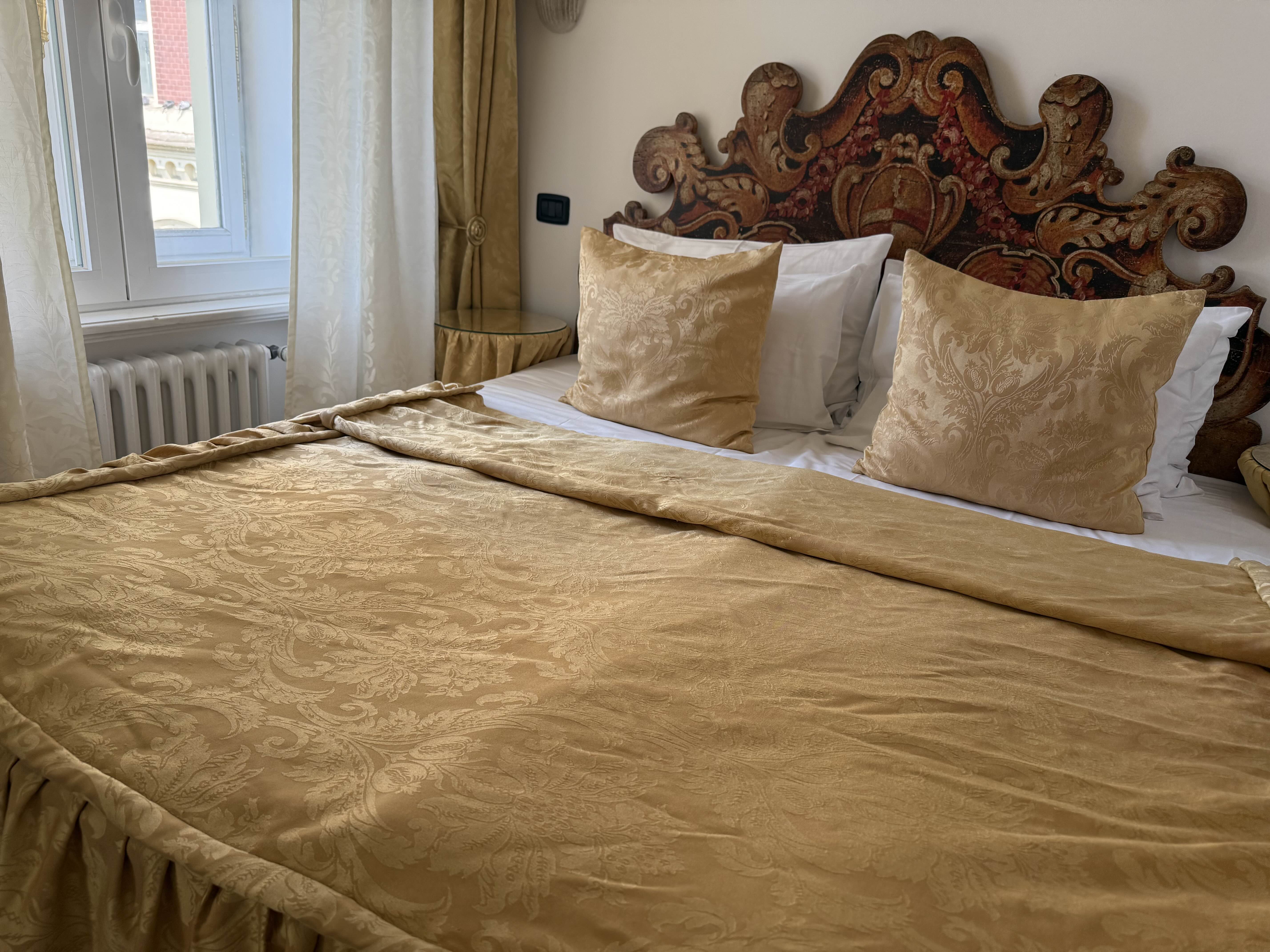 황금색 침대 커버로 클래식한 분위기를 주도하고