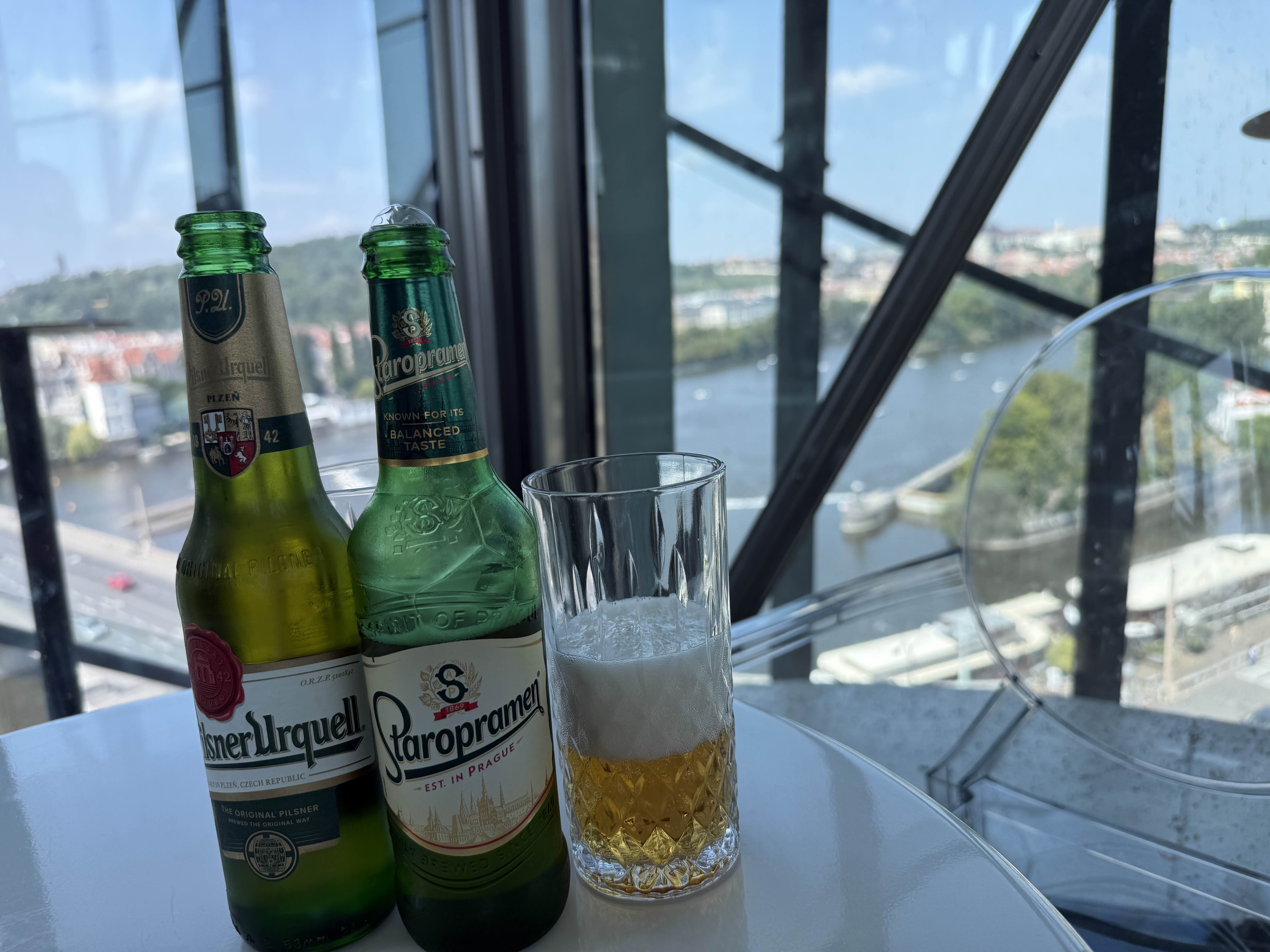 시원한 음료수와 함께 프라하 시내와 블타바 강,