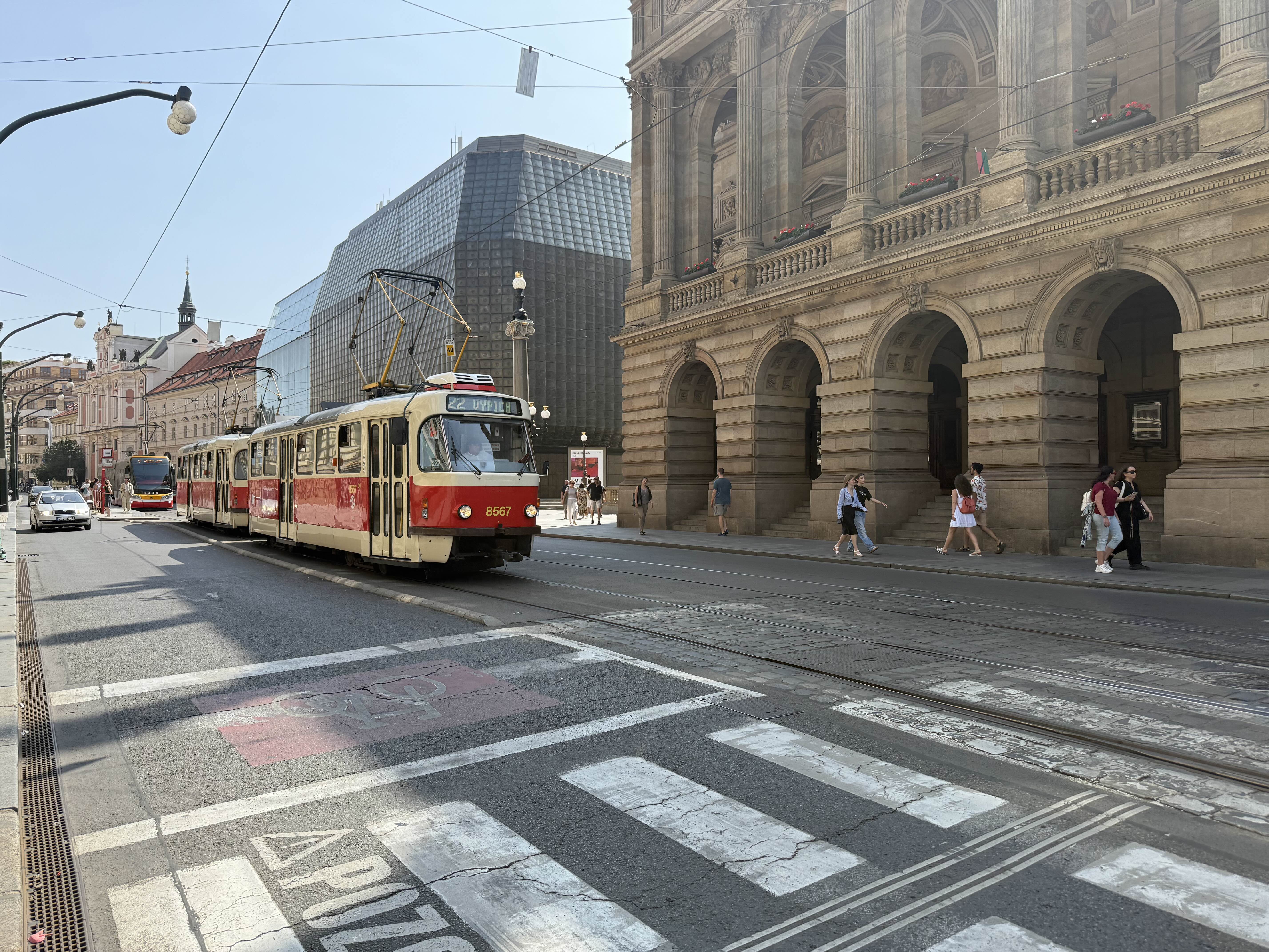모형 장난감처럼 생긴 클래식한 전차가 거리를 누비고 있습니다. 프라하는 건축 양식의 박물관이라고 불리기도 하는데요
